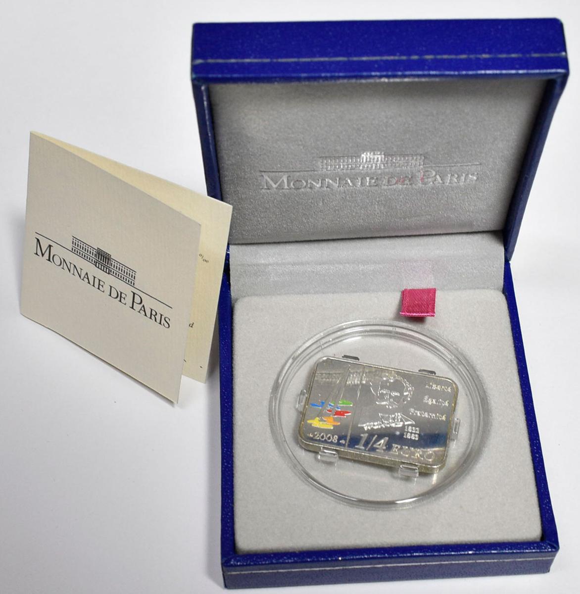 FRANCIA. 1/4 Euro (Ar. 15,00g/30mm). Moneda rectangular. 2008. Monnaie de Paris. Edouard Manet. PROOF. 10.000 unidades. Incluye estuche original y certificado de autenticidad.