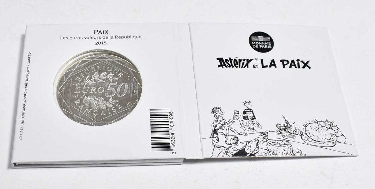 FRANCIA. 50 Euro (Ar. 41,00g/41mm). 2015. Monnaie de Paris. Asterix et la paix. FDC. Incluye estuche original.