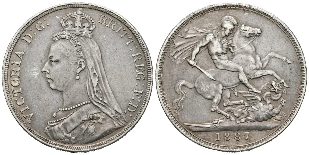 REINO UNIDO. 1 Crown (Ar. 27,94g/38mm). 1887. Reina Victoria. (Km#765). MBC+. Bonito tono