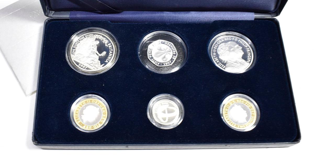 REINO UNIDO. Family Silver Collection. Set completo compuesto por 6 monedas de diferentes valores dedicadas a la Familia Real Británica. 2007. Royal Mint. Plata de 0,925. PROOF. Incluye estuche original, certificado de autenticidad y libreto explicativo de las acuñaciones. Escasa tirada de 7500 unidades.