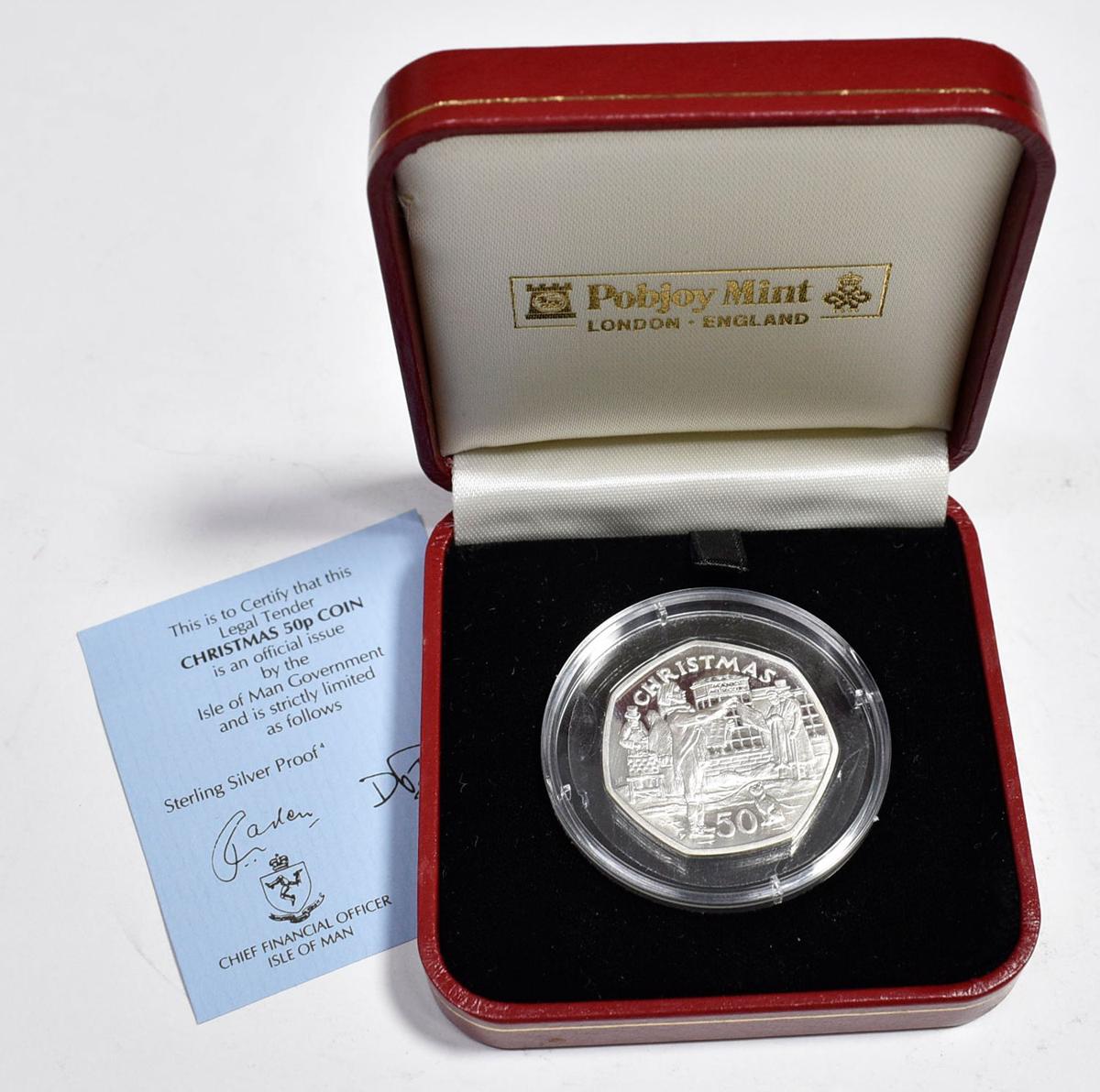 ISLA DE MAN. 50 Pence (Ar. 15,70g/31mm). 1992. Pobjoy Mint (Inglaterra). Christmas. (Km#335a. Incluye estuche original y certificado de autenticidad. Tirada de 5000 piezas.