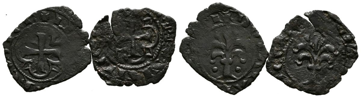 ITALIA. Conjunto de dos Dineros de Carlos de Anjou (1266-1285) de Messina. A EXAMINAR.