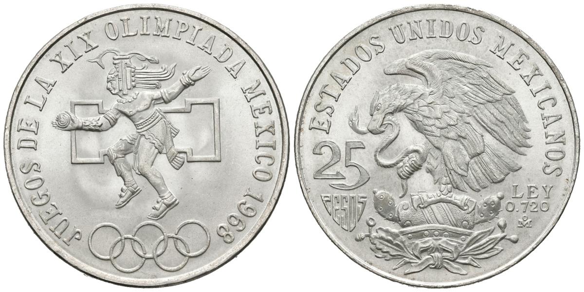 MÉXICO. 25 pesos (Ar. 22.47g / 38mm). 1968. Juegos Olímpicos México'68. (Km # 468). EBC.