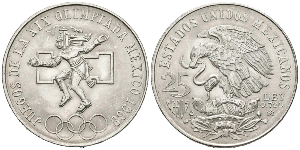 MEXICO. 25 pesos. (Ar. 22,59g/38mm). 1968. Juegos Olímpicos de MEXICO '68. (Km#468). EBC-.