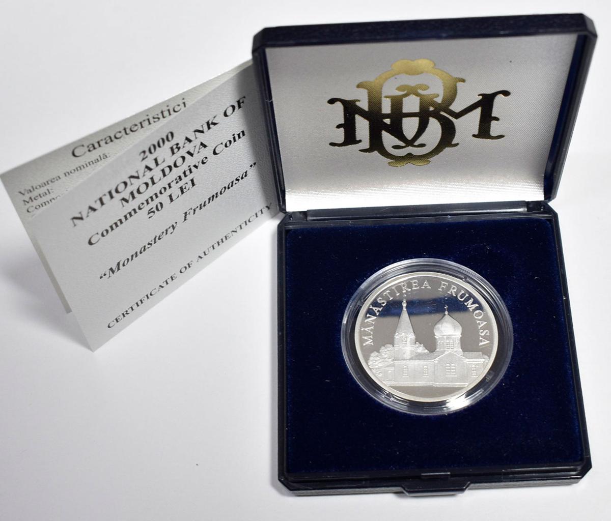 MOLDAVIA. 50 Lei (Ar. 16,50g/30mm). 2000. Czech Mint. Monasterio Frumoasa. (Km#82). PROOF. Incluye estuche original y certificado de autenticidad. Sólo 1000 unidades.