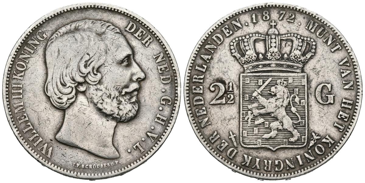 PAÍSES BAJOS. 2 1/2 Gulden. (Ar. 24.73g / 38mm). 1872. Willem II. (Km # 82). MBC.