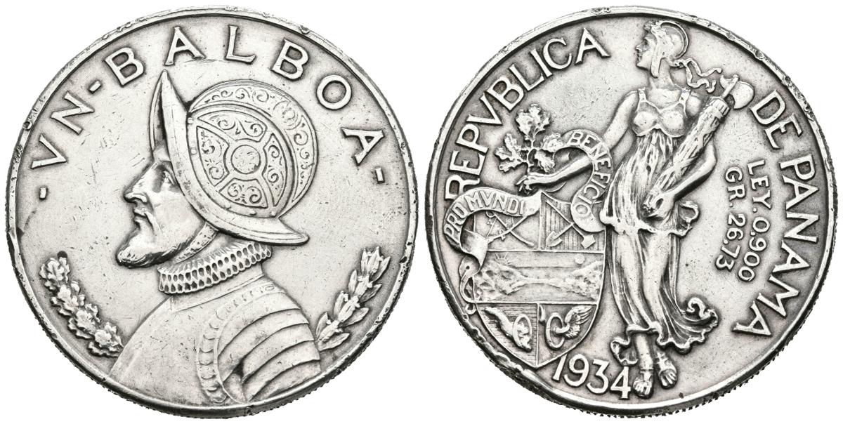 PANAMÁ. 1 Balboa (Ar. 26,67g/38mm). 1934. (Km#13). MBC+. Limpiada.