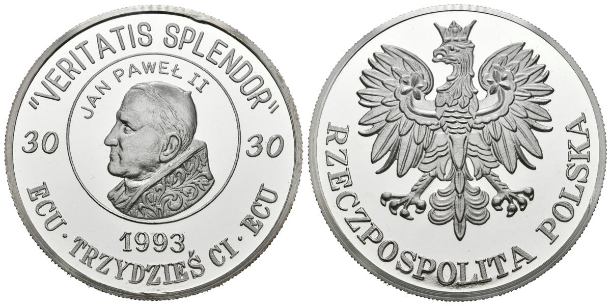 POLONIA. 30 Ecu. (Ar. 31,25g/39mm). 1993. San Pablo II. PROOF.