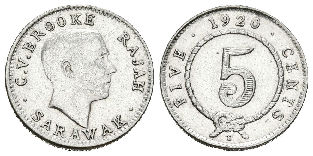 SARAWAK (Estado de Malasia). 5 Cents (Ar. 1,34g/15mm). 1920. Birmingham H. Protectorado Británico. Rajah Charles V. Brooke. (Km#36). MBC.