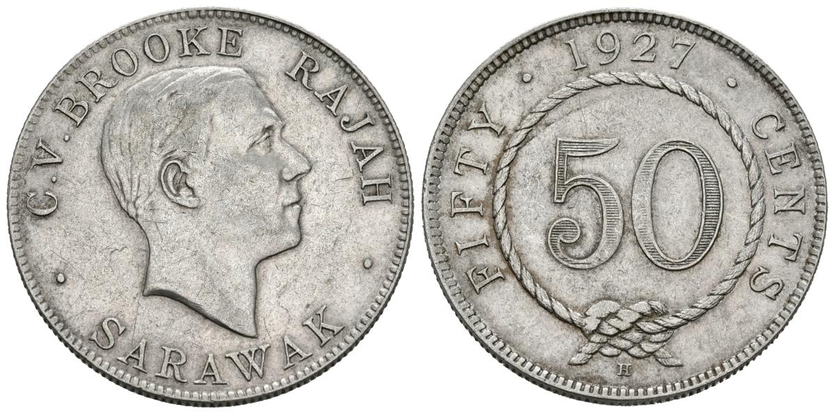 SARAWAK (Estado de Malasia). 50 Cents (Ar. 10,37g/31mm). 1927. Birmingham H. Protectorado Británico. Rajah Charles V. Brooke. (Km#19). MBC.
