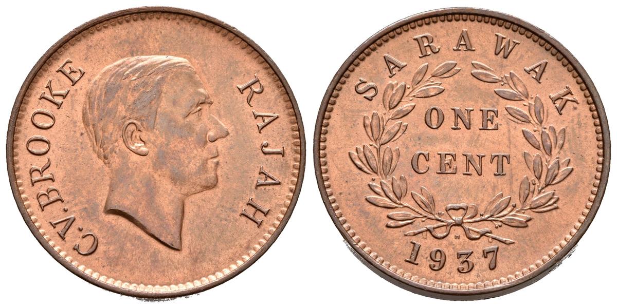 SARAWAK (Estado de Malasia). 1 Cent (Ae. 5,52g/25mm). 1937. Birmingham H. Protectorado Británico. Rajah Charles V. Brooke. (Km#18). EBC. Preciosa pátina.
