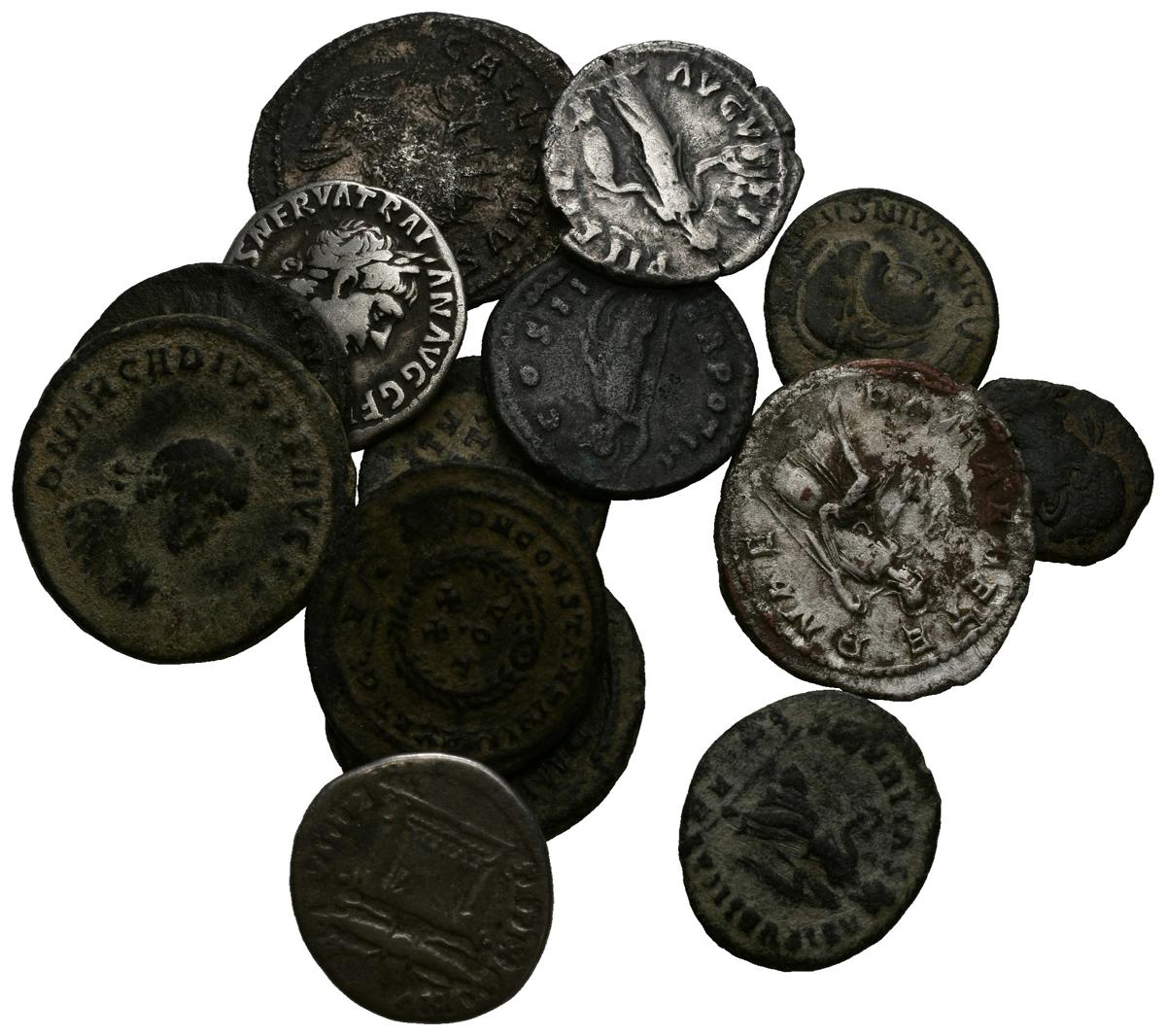 IMPERIO ROMANO. Lote compuesto por 14 monedas, 9 de ellas bronces y 5 de plata de distintos emperadores del alto y bajo imperio. A EXAMINAR.