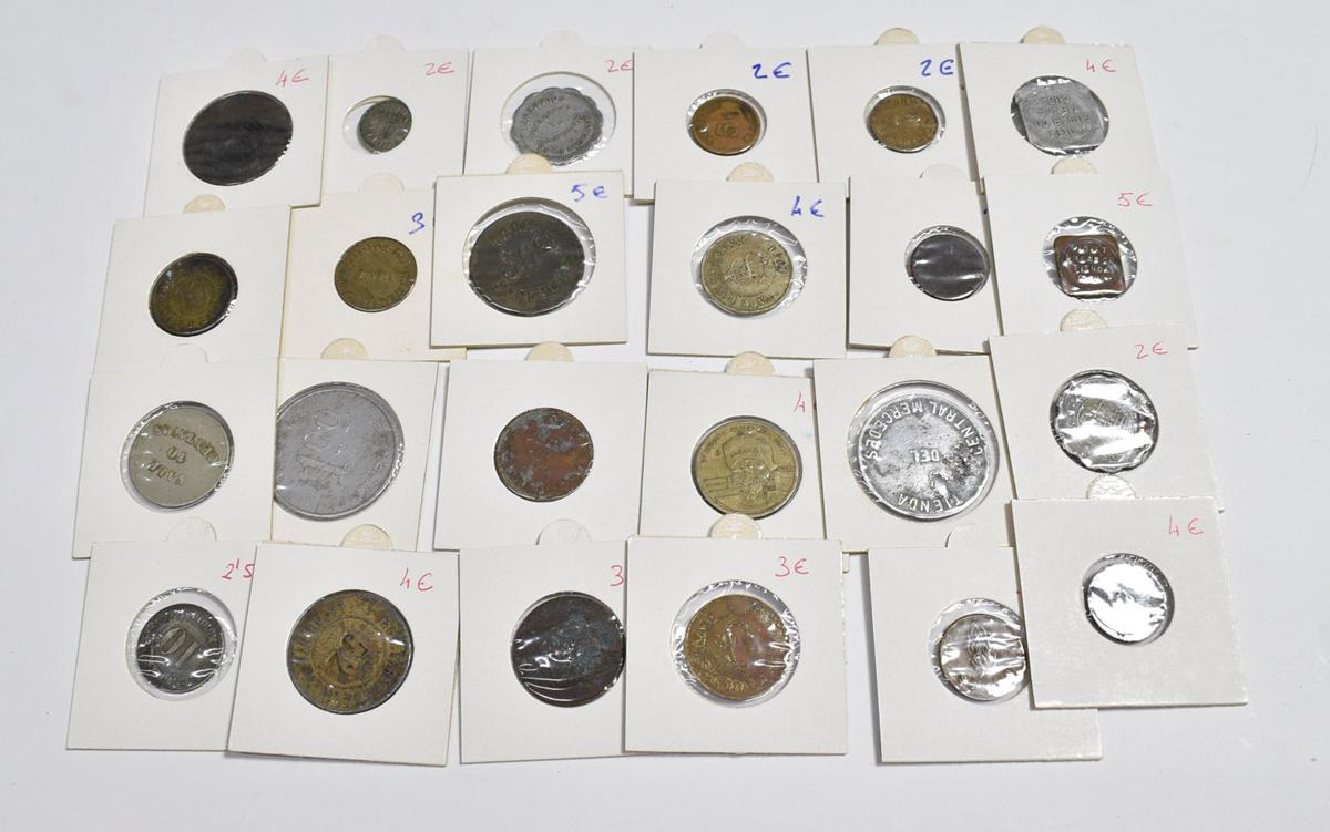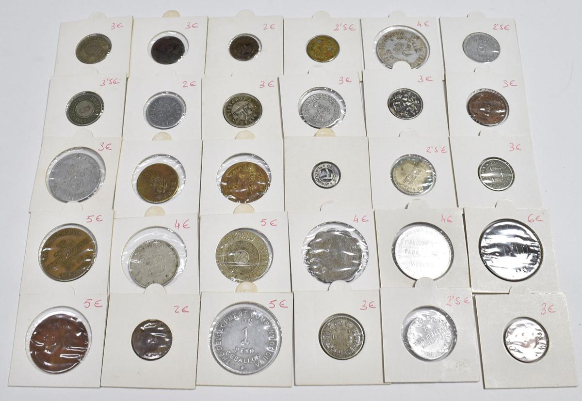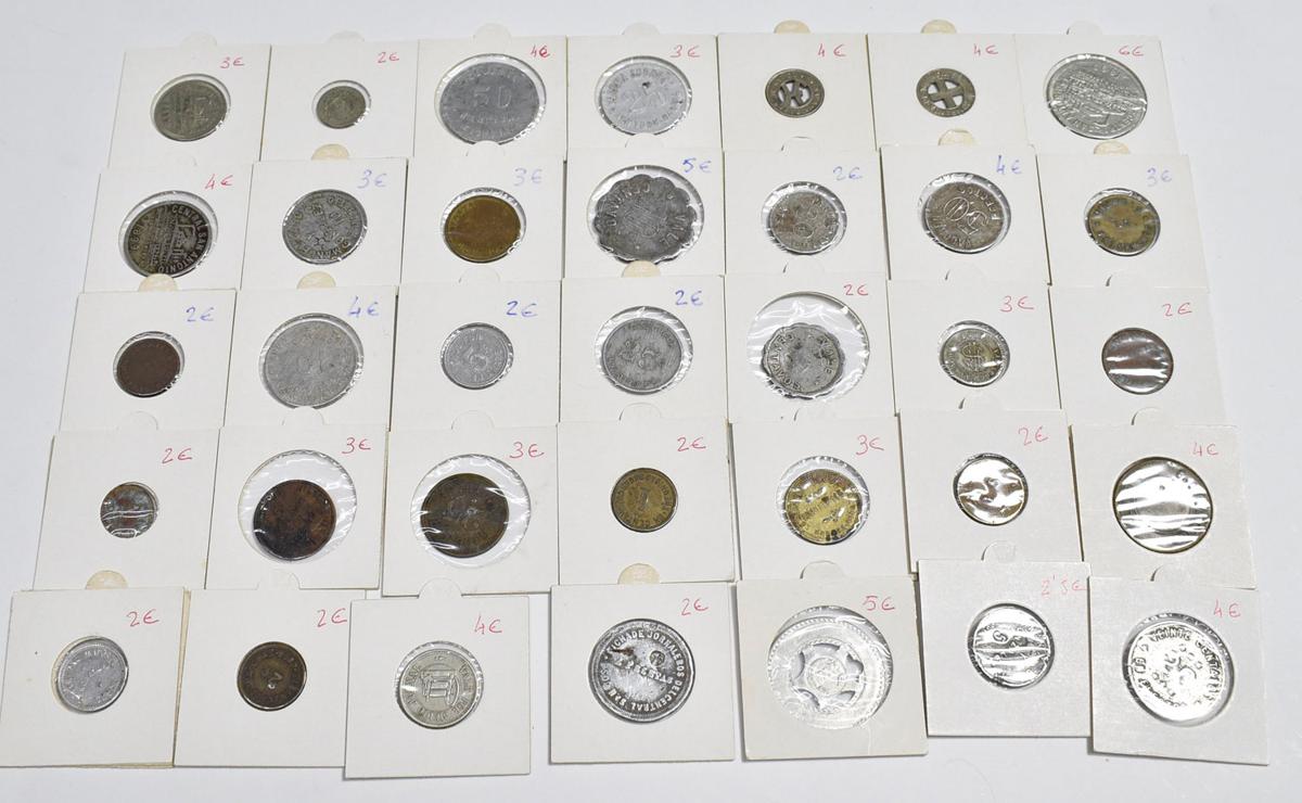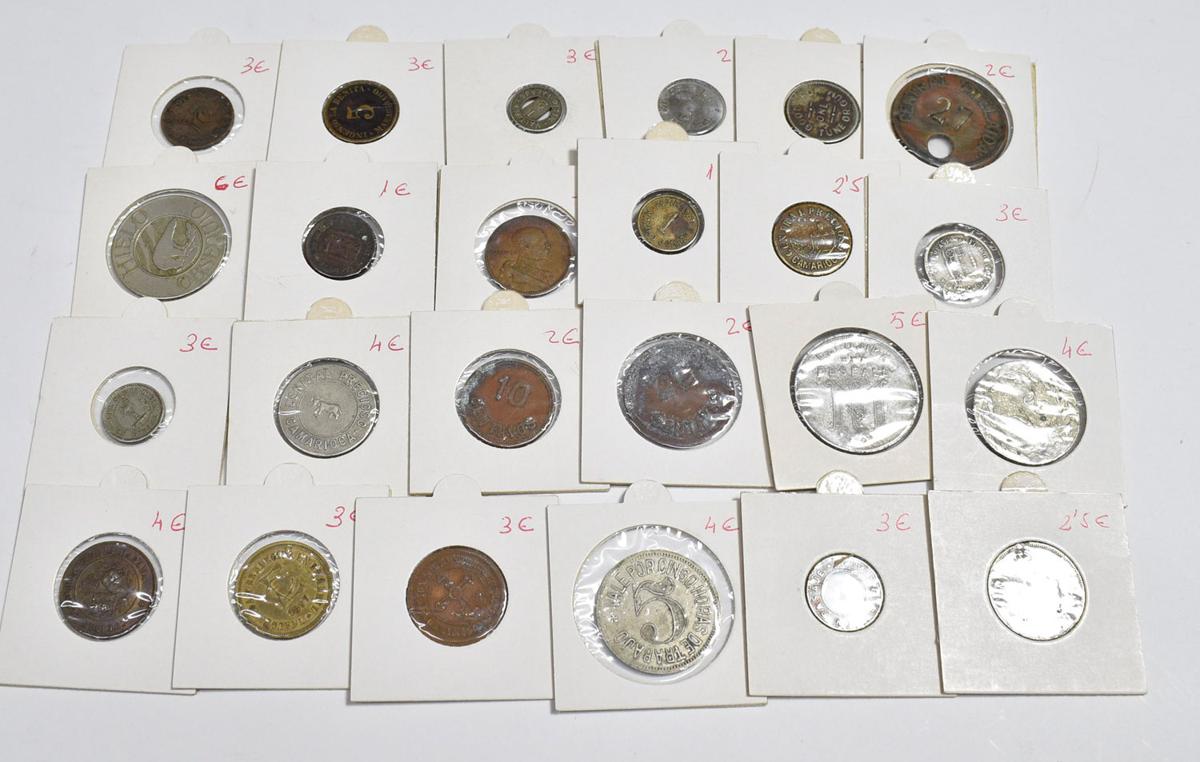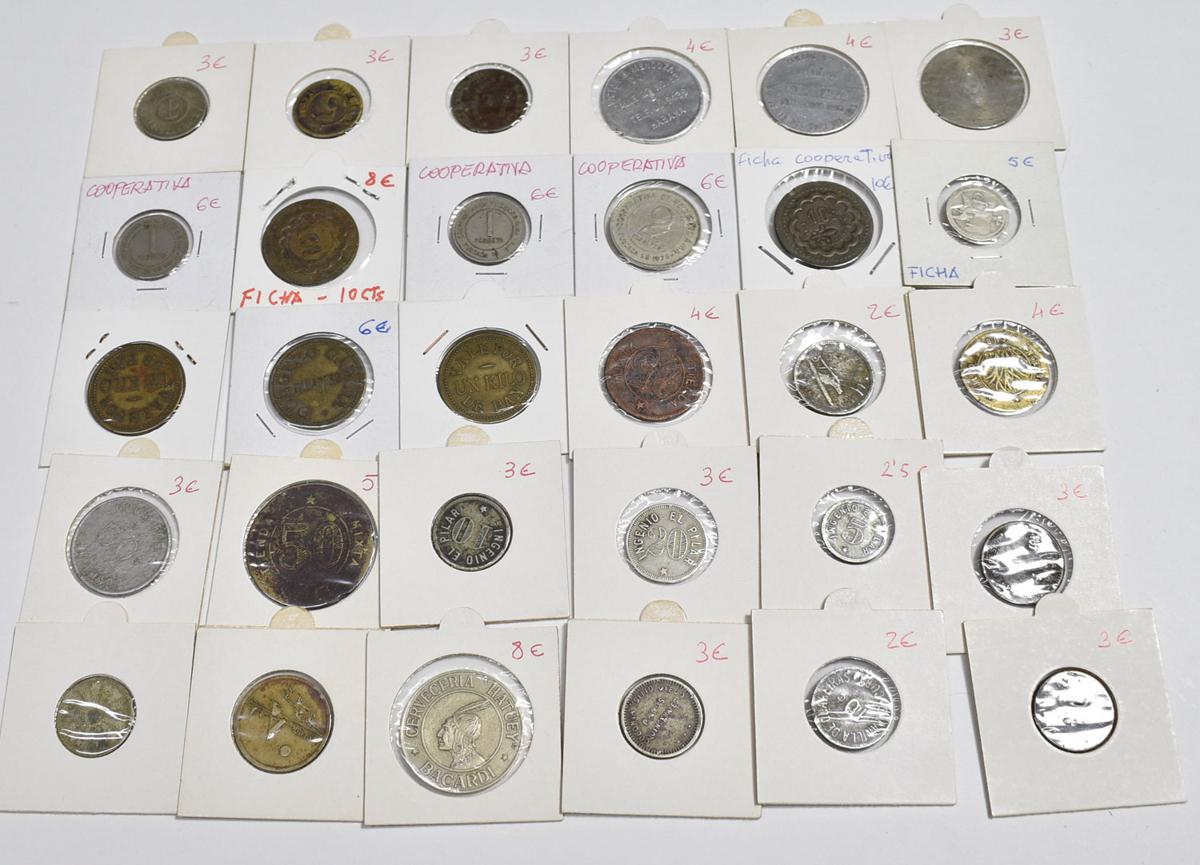 FICHAS Y VALES. Interesante conjunto formado por más de 140 piezas con una enorme variedad de fichas en su gran mayoría de Cooperativas, vales de panaderías, suministros y restaurantes del siglo XX aunque también contiene ejemplares del siglo XIX. Mayoría de piezas de Cuba y Cataluña. Diferentes estados de conservación. A EXAMINAR.
