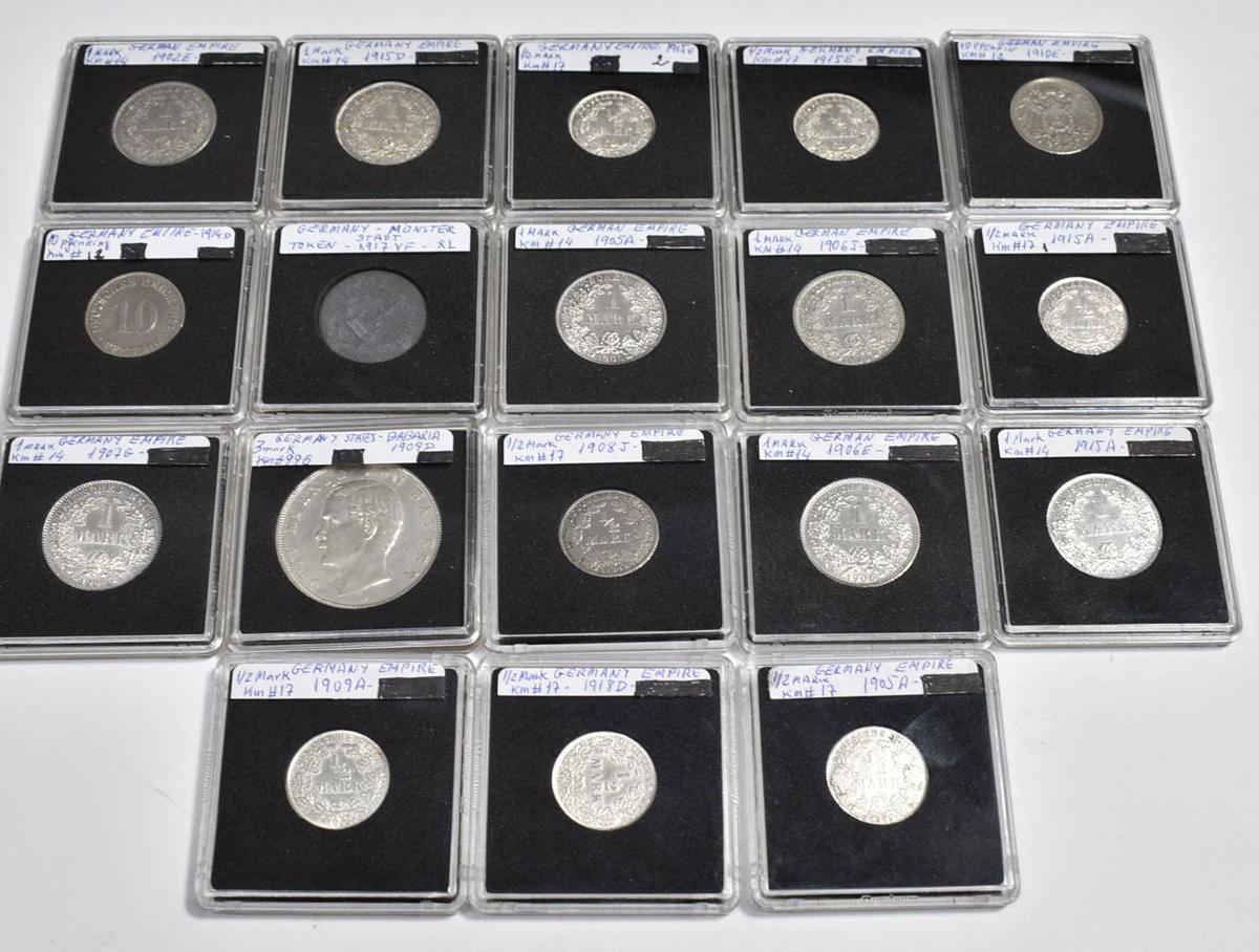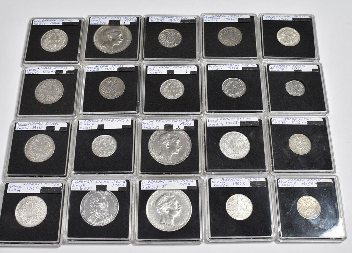 ALEMANIA. Preciosa colección formada por 38 monedas de diferentes módulos entre los que encontramos varios divisores de Pfennig y 1/2, 1 y 3 Mark en plata. Diferentes cecas. Todas las monedas pertenecen al denominado periodo de Imperio Alemán (1871-1918). Diferentes estados de conservación incluyendo un buen número de piezas en un alto nivel. A EXAMINAR