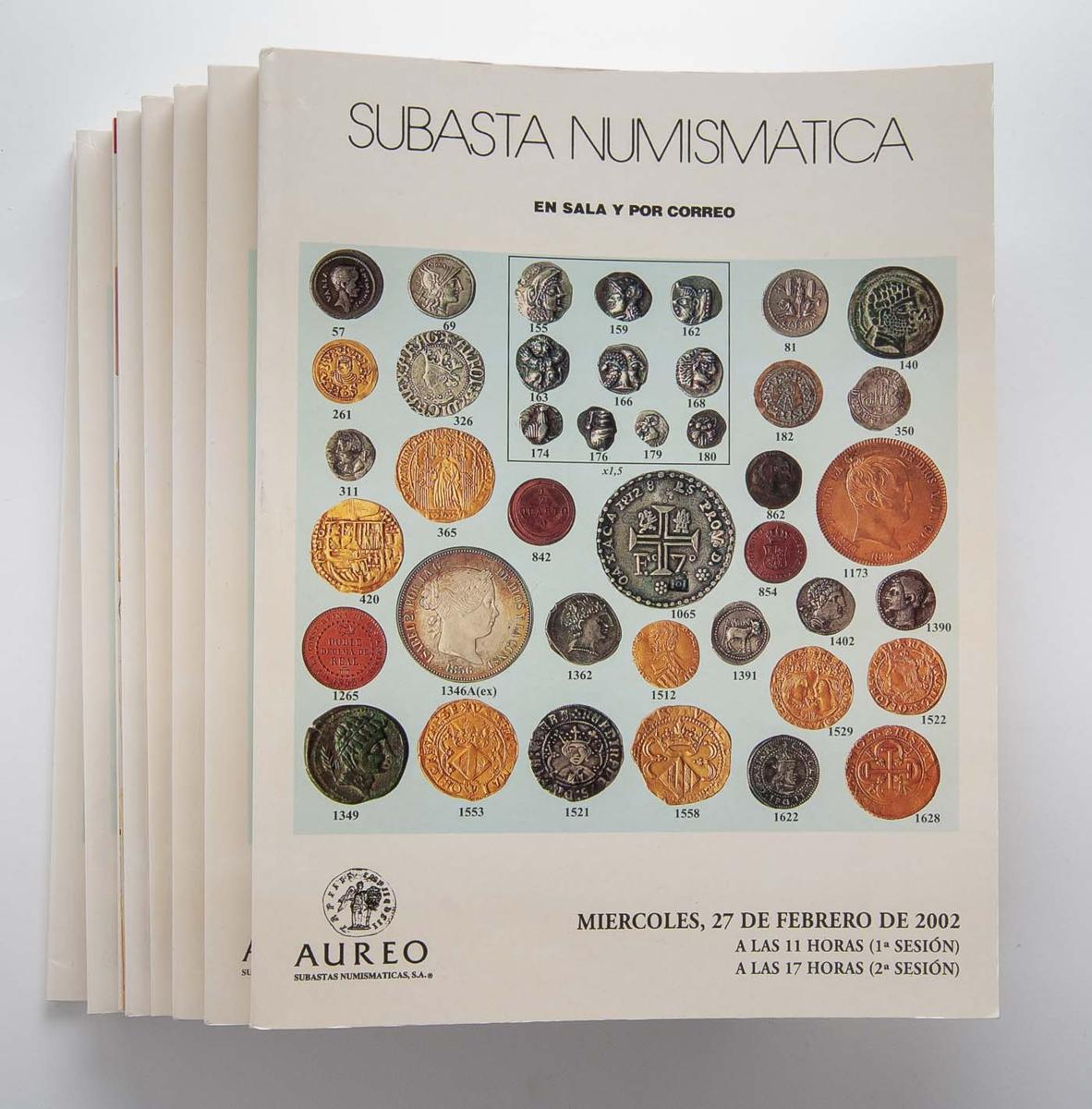 BIBLIOGRAFIA. Lote de 47 catálogos de subasta de la casa Aureo & Calicó desde principios de los 2002 hasta 2005, contiene 3 catálogos de selección. A EXAMINAR.