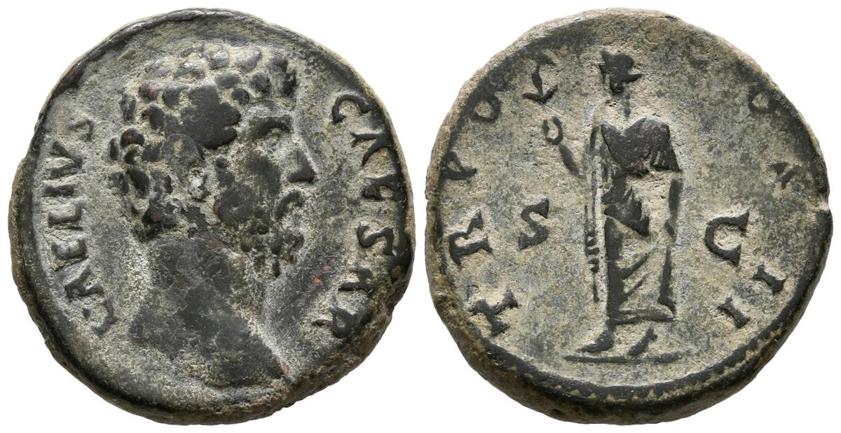 AELIO. As. (Ae. 10,54g/26mm). 137 d.C. Roma. (RIC 1067). Anv: Cabeza de Aelio a derecha, alrededor leyenda: L AELIVS CAESAR. Rev: Spes estante a izquierda portando flor, entre S-C, alrededor leyenda: TR POT COS II. MBC.