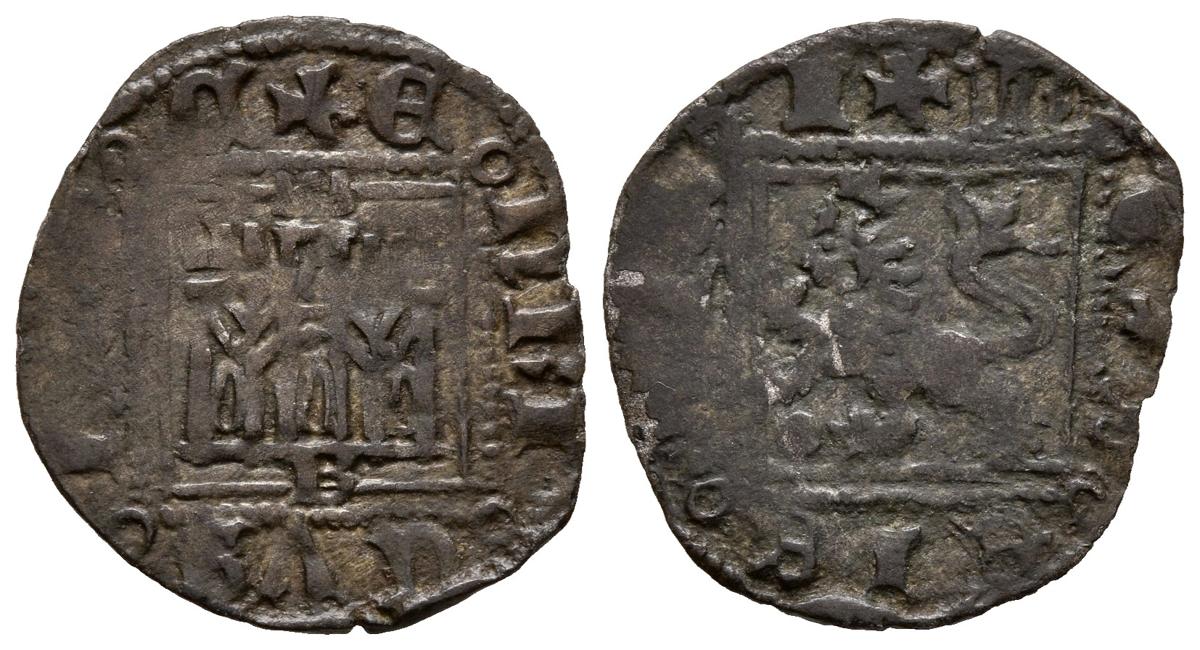 ENRIQUE II (1368-1379). Novén. (Ve. 0,78g/19mm). Burgos. (FAB-494). Anv: Castillo, debajo B, alrededor leyenda: ENRICVS REX CA. Rev: León rampante coronado a izquierda, roel delante del león, alrededor leyenda: ENRICVS REX LEG. MBC.
