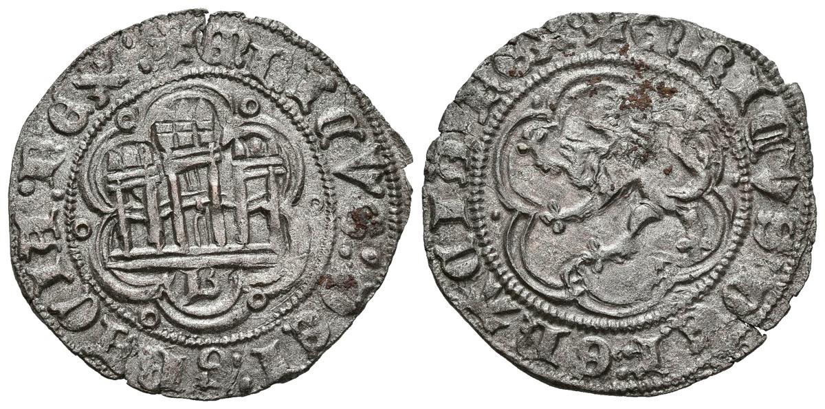 ENRIQUE III (1390-1406). Blanca. (Ve. 1,84g/24mm). Burgos. (FAB-597). Anv: Castillo, debajo marca de ceca: B, todo dentro de gráfila lobular, alrededor leyenda: ENRICVS DEI GRACIA REX. Rev: León rampante a izquierda dentro de gráfila lobular, alrededor leyenda: ENRICVS DEI GRACIA REX. MBC+. Bonito ejemplar.