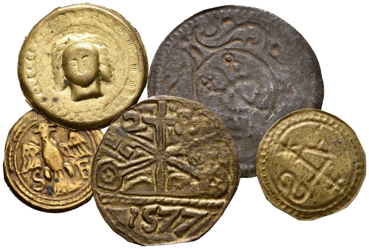 PELLOFAS. Bonito conjunto formado por 5 piezas diferetes acuñadas en Gerona, San Feliú (2), Olot y Besalú. Diferentes estados de conservación. A EXAMINAR.