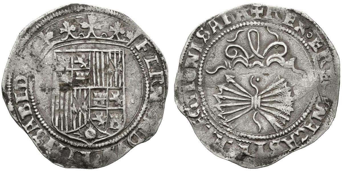 REYES CATOLICOS (1474-1504). 1 Real. (Ar. 3,24g/28mm). Sin marca de ceca. (Cal-2019-Falta). MBC. Cospel faltado. Alabeada. Muy raro.
