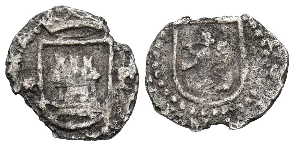 FELIPE II (1556-1598). 1/4 de Real (Ar. 0,51g/12mm). S/D (1577-1588). Lima. (Cal-2019-102). Castillo entre estrella y P. BC-. Cospel faltado. Rara.