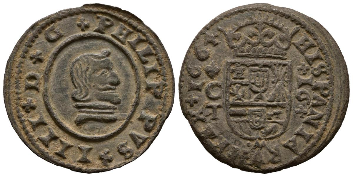 FELIPE IV (1621-1665). 16 Maravedís. (Ae. 3,70g/26mm). 1664. Córdoba T. (Cal-2019-445). EBC-/MBC+.