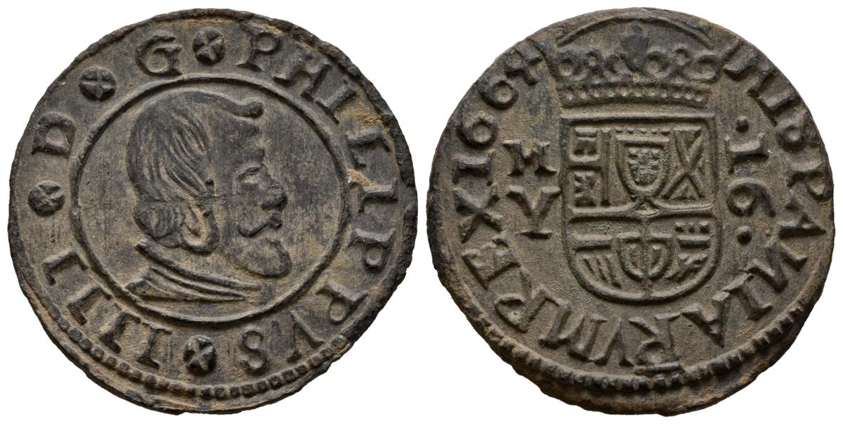 FELIPE IV (1621-1665). 16 Maravedís. (Ae. 4,22g/26mm). 1664. Madrid Y. (Cal-2019-481). MBC+.