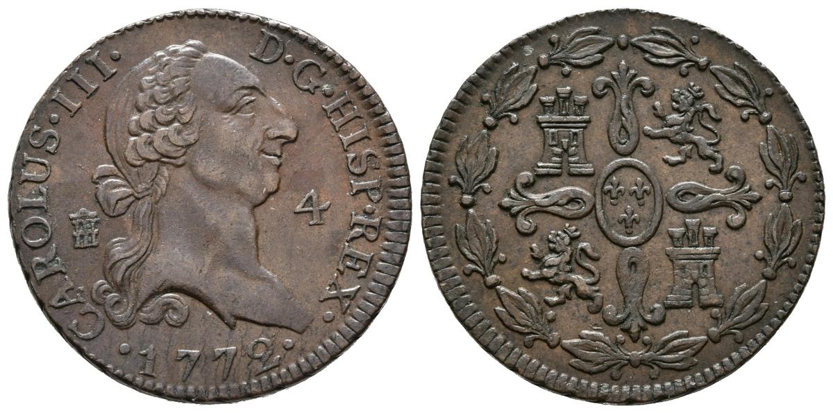 CARLOS III (1759-1788). 4 Maravedís (Ae. 5,26g/25mm). 1772. Segovia. (Cal-2019-52). EBC. Bonito ejemplar, escaso así.