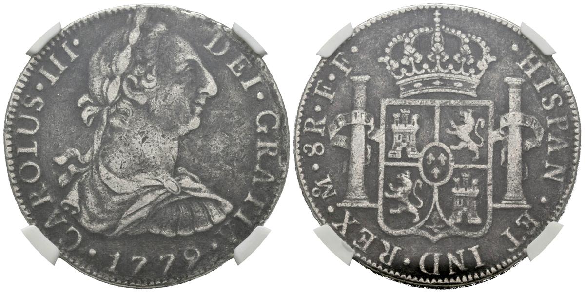 CARLOS III (1759-1788). 8 Reales (Ar. 27,00g/38mm)*. 1779. México FF. (Cal-2019-1118). MBC. Procedente de El Cazador. Encapsulada por NGC. *Peso y medida teóricos.