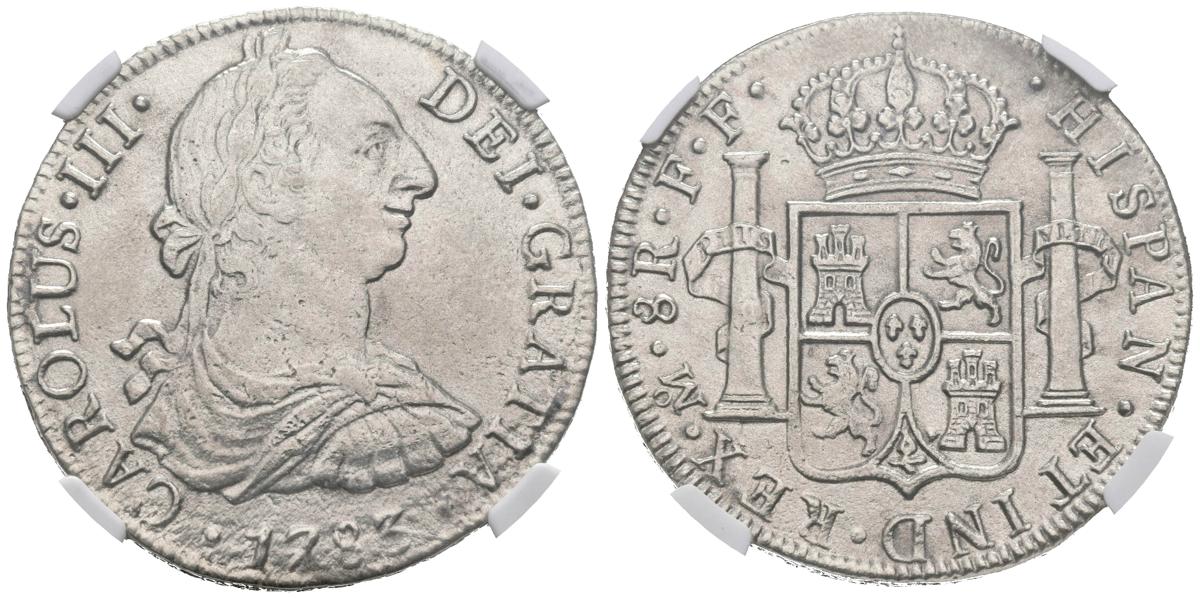 CARLOS III (1759-1788). 8 Reales (Ar. 27,00g/38mm)*. 1783. México FF. (Cal-2019-1124). EBC-. Procedente de El Cazador. Encapsulada por NGC. *Peso y medida teóricos.