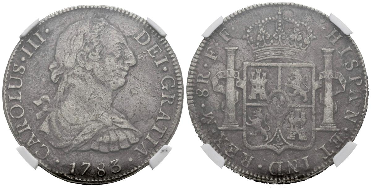 CARLOS III (1759-1788). 8 Reales (Ar. 27,00g/38mm)*. 1783. México FF. (Cal-2019-1124). MBC. Procedente de El Cazador. Encapsulada por NGC. *Peso y medida teóricos.