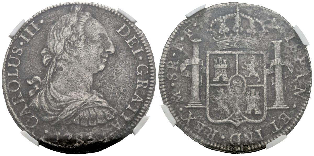 CARLOS III (1759-1788). 8 Reales (Ar. 27,00g/38mm)*. 1783. México FF. (Cal-2019-1124). MBC. Procedente de El Cazador. Encapsulada por NGC. *Peso y medida teóricos.