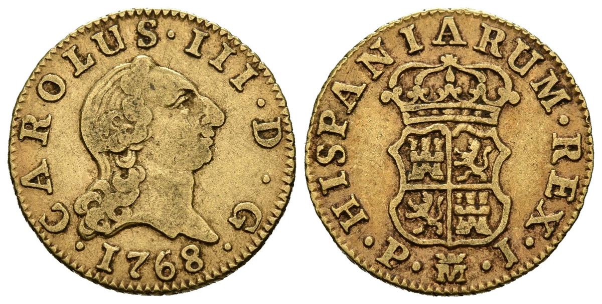 CARLOS III (1759-1788). 1/2 Escudo. (Au. 1,75g/14mm). 1768. Madrid JP. (Cal-2019-1252). MBC.