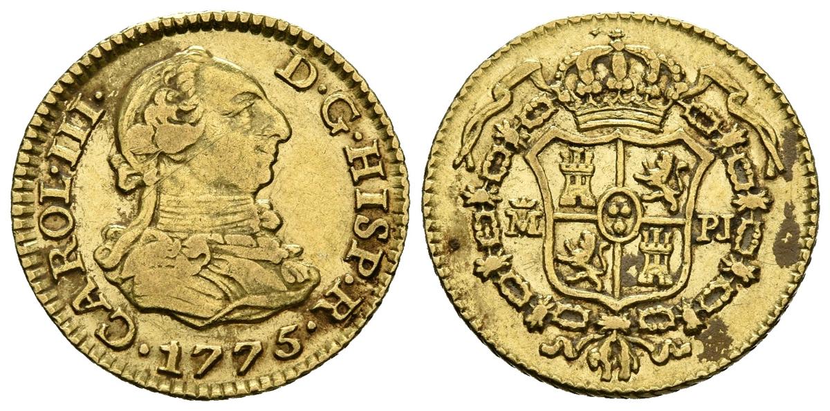 CARLOS III (1759-1788). 1/2 Escudo. (Au. 1,76g/15mm). 1775. Madrid PJ. (Cal-2019-1262). MBC-.