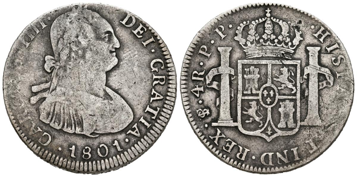 CARLOS IV (1788-1808). 4 Reales. (Ar. 12,95g/34mm). 1801. Potosí PP. (Cal-2019-836). BC.