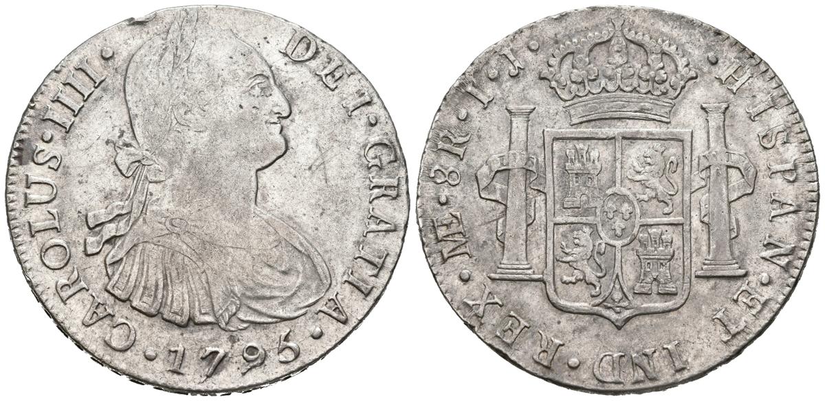 CARLOS IV (1788-1808). 8 Reales. (Ar. 27,08g/40mm). 1795. Lima IJ. (Cal-2019-913). MBC. Limpiada.