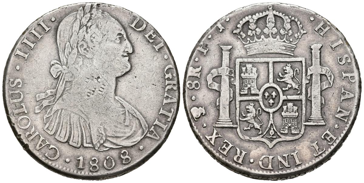 CARLOS IV (1788-1808). 8 Reales. (Ar. 26,86g/39mm). 1808. Potosí PJ. (Cal-2019-1014). BC+.