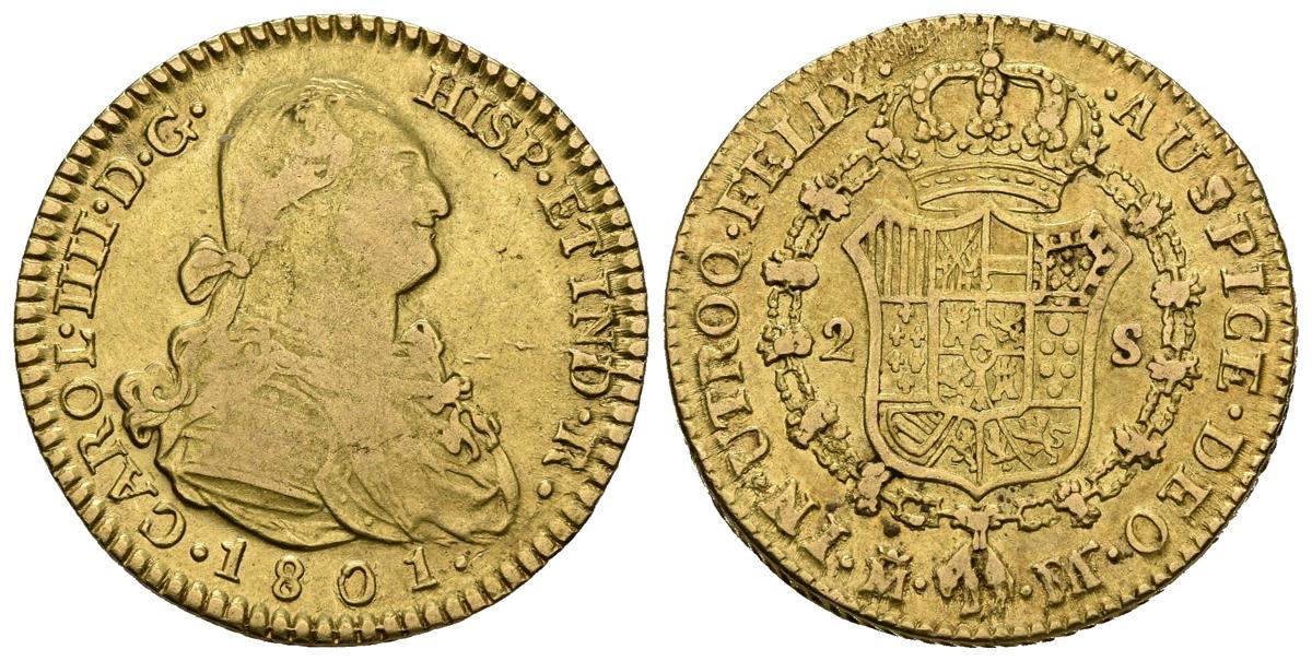 CARLOS IV (1788-1808). 2 Escudos. (Au. 6,66g/22mm). 1801. Madrid MF. (Cal-2019-1301). MBC-.