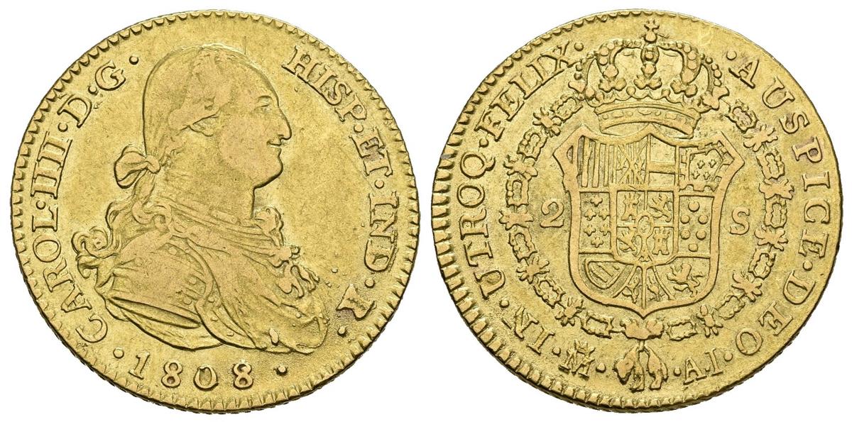 CARLOS IV (1788-1808). 2 Escudos. (Au. 6,65g/22mm). 1808. Madrid AI. (Cal-2019-1320). MBC-.