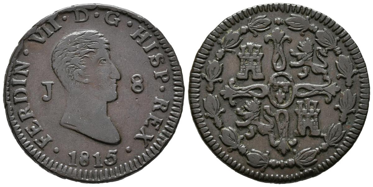FERNANDO VII (1808-1833). 8 Maravedís (Ae. 9,90g/30mm). 1815. Jubia. (Cal-2019-193). Busto desnudo. MBC.