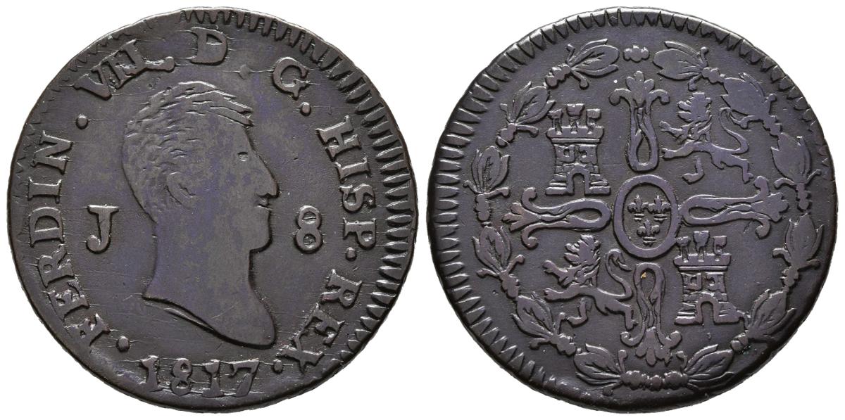 FERNANDO VII (1808-1833). 8 Maravedís (Ae. 9,81g /29mm). 1817. Jubia. Busto denudo. (Cal-2019-196). MBC+.