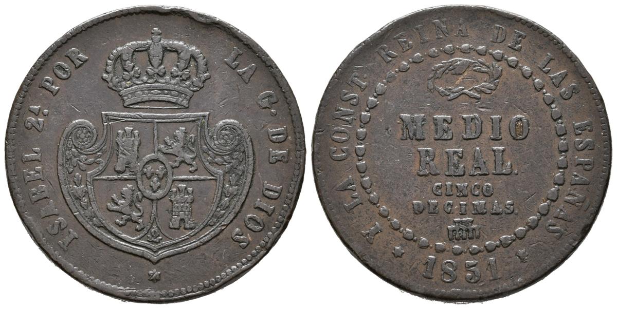 ISABEL II (1833-1868). 1/2 Real ó 5 Décimas (Ae. 18,88g/32). 1851. Segovia. (Cal-2019-156). MBC-.