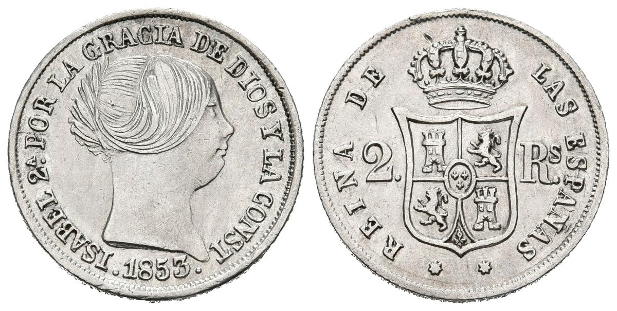 ISABEL II (1833-1868). 2 Reales (Ar. 2,57g/18mm). 1853. Sevilla. (Cal-2019-391). EBC-. Limpiada y golpe en anveso.