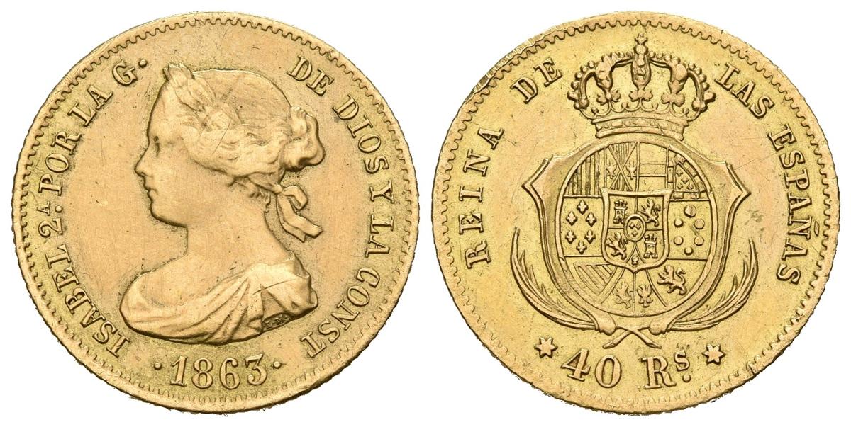 ISABEL II (1833-1868). 40 Reales (Au. 3,31g/18mm). 1863. Madrid. (Cal-2019-682). MBC+.