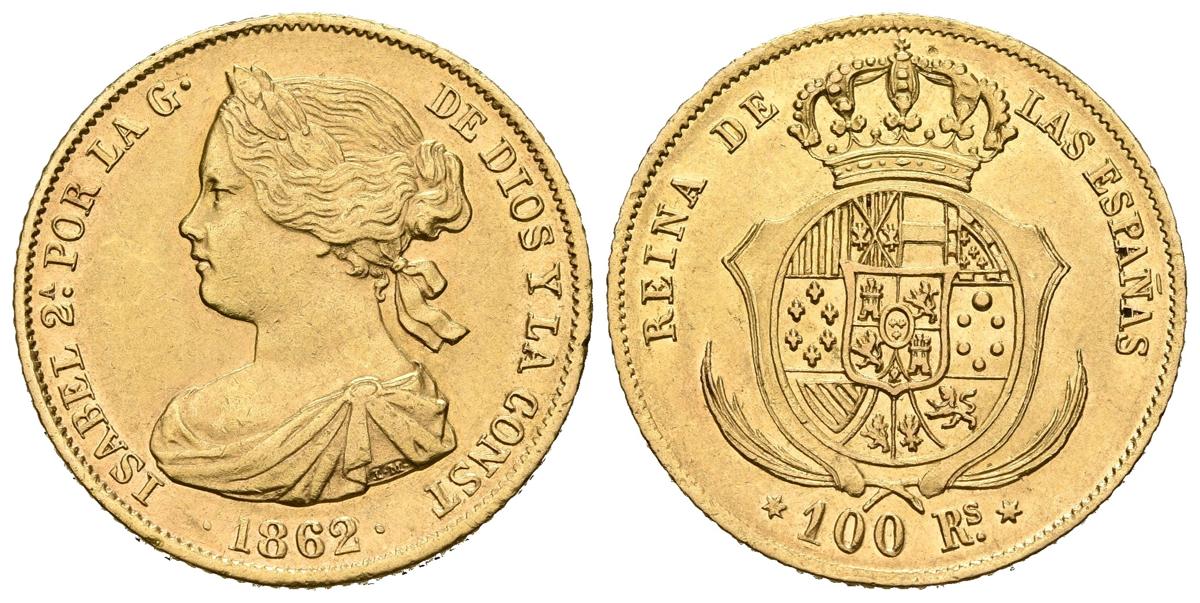 ISABEL II (1833-1868). 100 Reales (Au. 8,35g/22mm). 1862. Madrid. (Cal-2019-789). EBC. Leves marquitas. Brillo original.