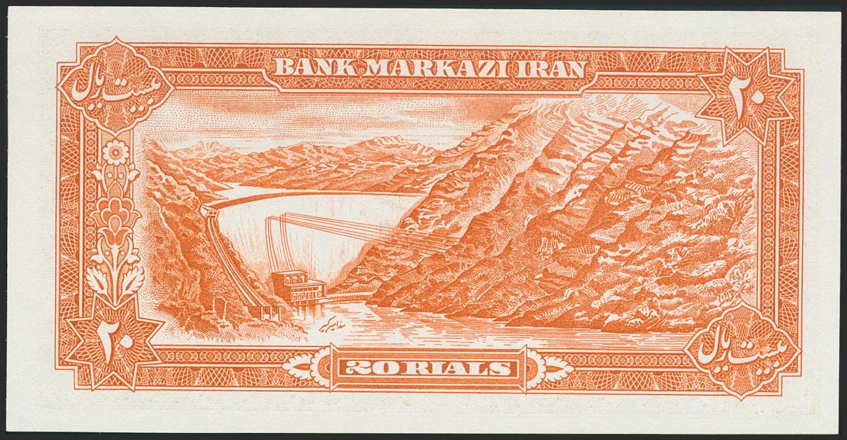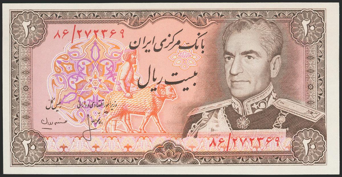 IRAN. 20 Rials. (1974ca). National Bank. Signatures: Mehran and Ansary. Farsi denomination long. (Pick: 100a2). Uncirculated.