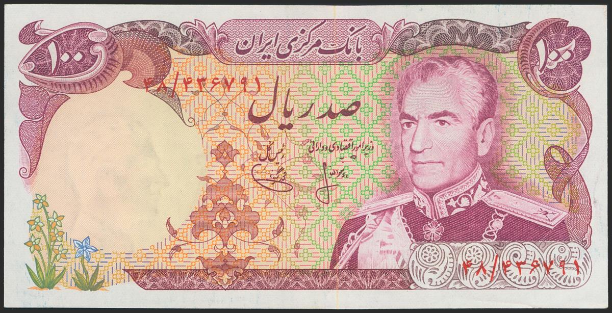 IRAN. 100 Rials. 1974-1979. National Bank. (Pick: 102a). About Uncirculated.