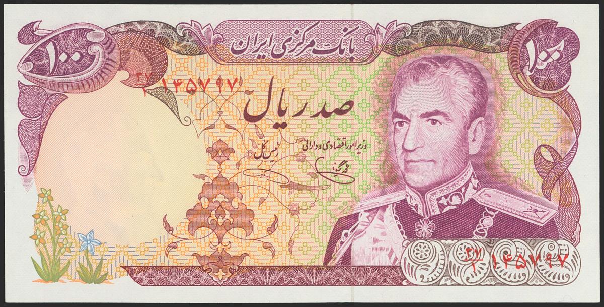 IRAN. 100 Rials. (1974ca). National Bank. Signatures: Khoshkish and Yeganeh, black security thread. (Pick: 102d). Uncirculated.
