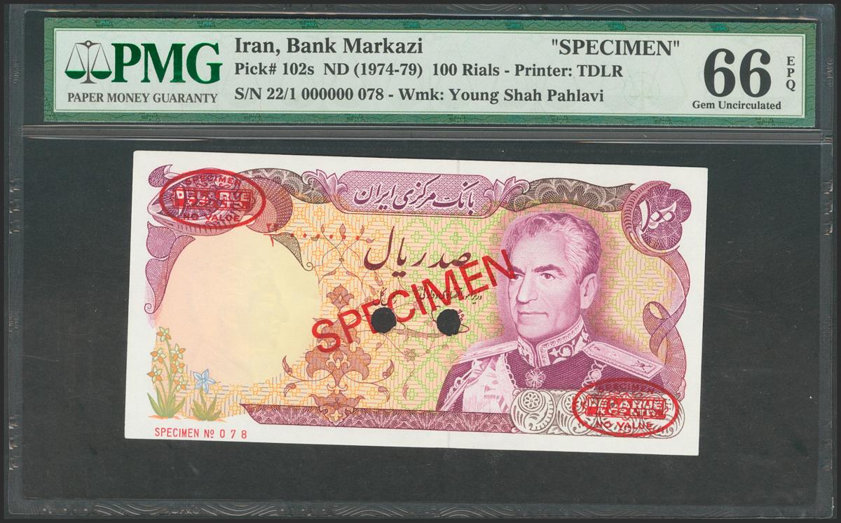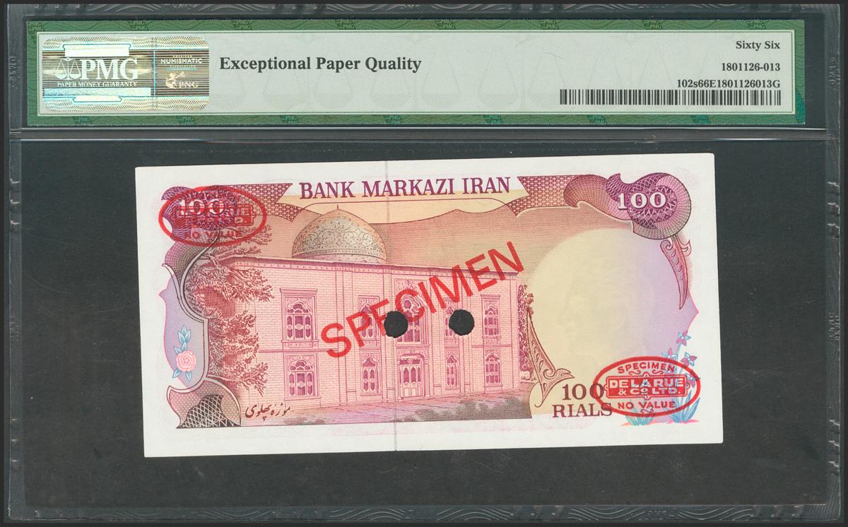 IRAN. 100 Rials. 1974. Specimen. (Pick: 102s). PMG66EPQ.