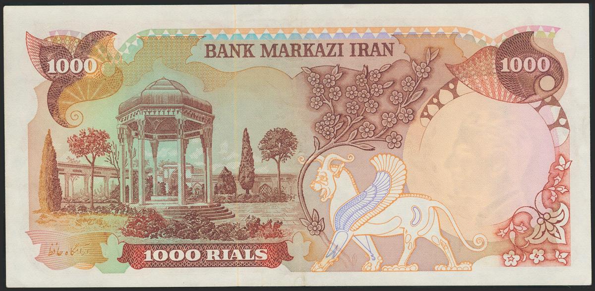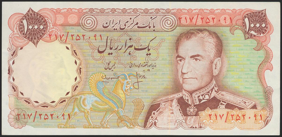 IRAN. 1000 Rials. (1974ca). National Bank. Signatures: Mehran and Ansary, yellow security thread. (Pick: 105b). About Uncirculated.